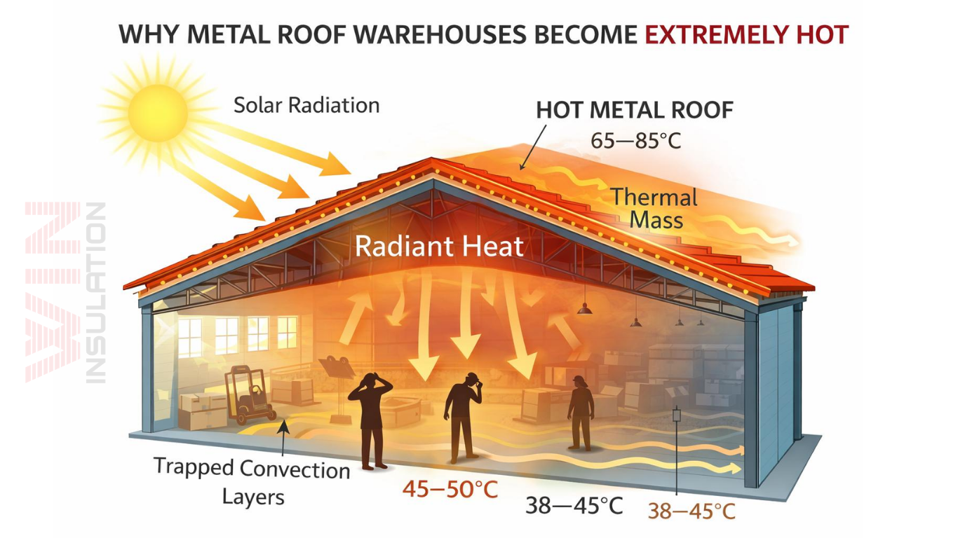 Điều đáng lưu ý là quá trình này diễn ra liên tục trong nhiều giờ, khiến nhiệt tích tụ và duy trì ngay cả khi trời đã dịu nắng. Nếu không có lớp cách nhiệt phù hợp, nhiệt lượng này sẽ làm không gian bên trong trở nên oi bức, gây áp lực lớn lên hệ thống làm mát và ảnh hưởng đến hoạt động sản xuất; sức khỏe con người,… thậm chí nghiêm trọng hơn khi nhiệt độ cao đỉnh điểm sẽ gây ra tình trạng cháy nổ.